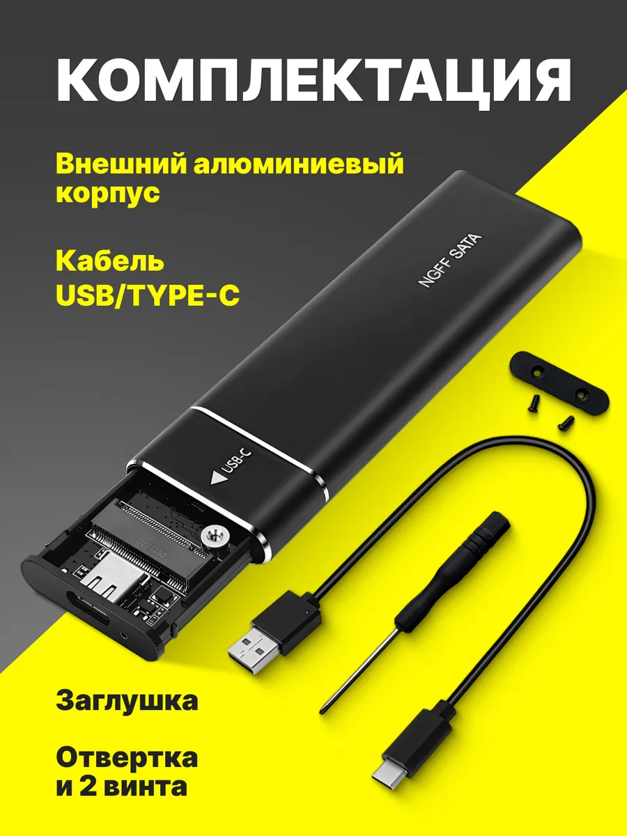 Бокс выполнен из прочного и легкого алюминия, который обеспечивает надежную защиту вашего SSD от механических повреждений и нагрева, а также придает устройству элегантный и современный вид.