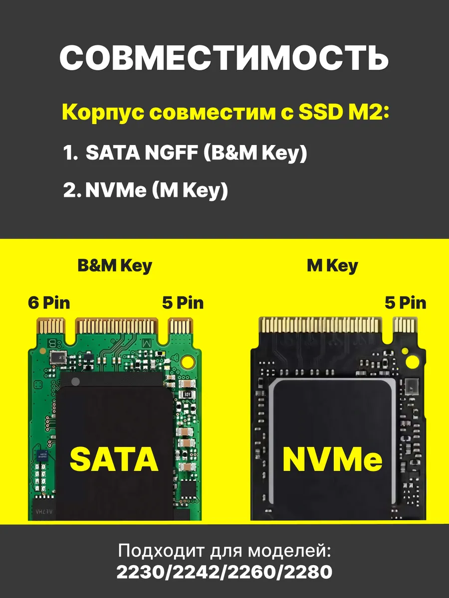Поддержка форматов NVMe и NGFF (SATA): Этот бокс совместим с двумя популярными типами жестких дисков – NVMe и NGFF, что обеспечивает широкий выбор совместимых устройств и делает его идеальным решением для обновления или хранения данных.